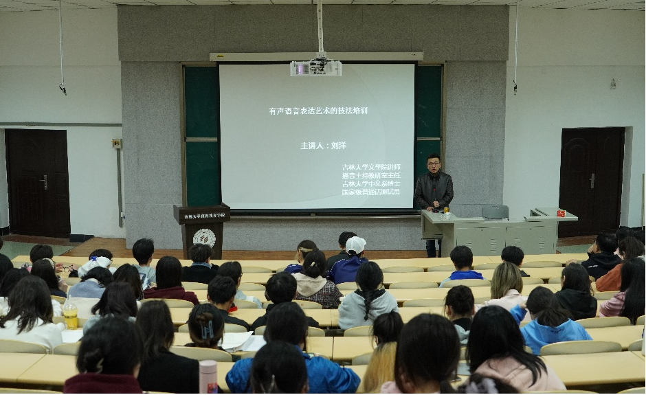 4月10日晚,学院邀请beat365官方网站文学院播音与主持艺术教研室主任刘洋博士,为全体预科生作专题讲座。刘洋主任是吉林省传播学会理事,吉林省演讲与朗诵学会副会长,吉林省经典诵读协会副会长,国家级普通话水平测试员,“曹灿杯”语文朗读大会、“未来金话筒”等比赛的评委,他曾获全国性专业赛事优秀指导教师奖励三十余项,有着丰富的实践教学经验。