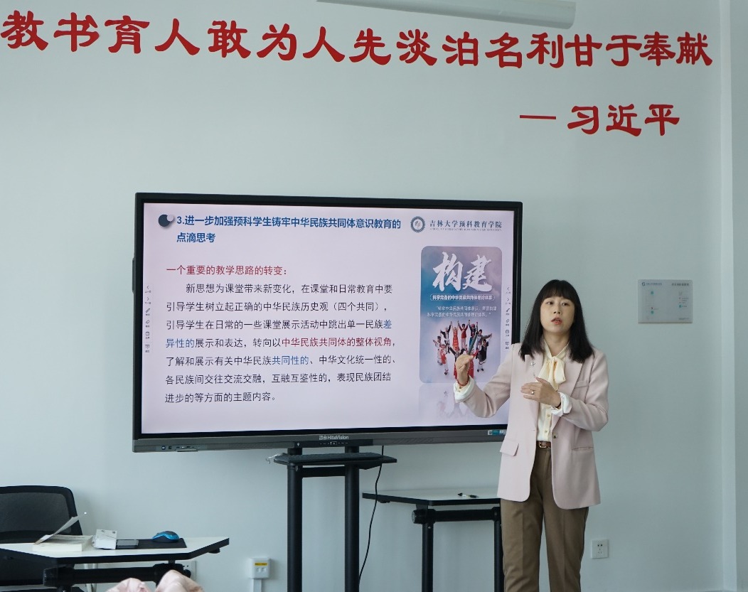 贾丽华书记指出预科教育就是“补基础教育之缺项、预高等教育之挑战”,要始终以“立德树人”为指导思想,加强对学生铸牢中华民族共同体意识的教育,各类课程需要与思政课同向同行,做到思政课程与课程思政有机融合。学院将继续以“请进来、走出去”的方式开展相关的培训和学习,希望教师们能持续学习,不断提高教学水平和能力。